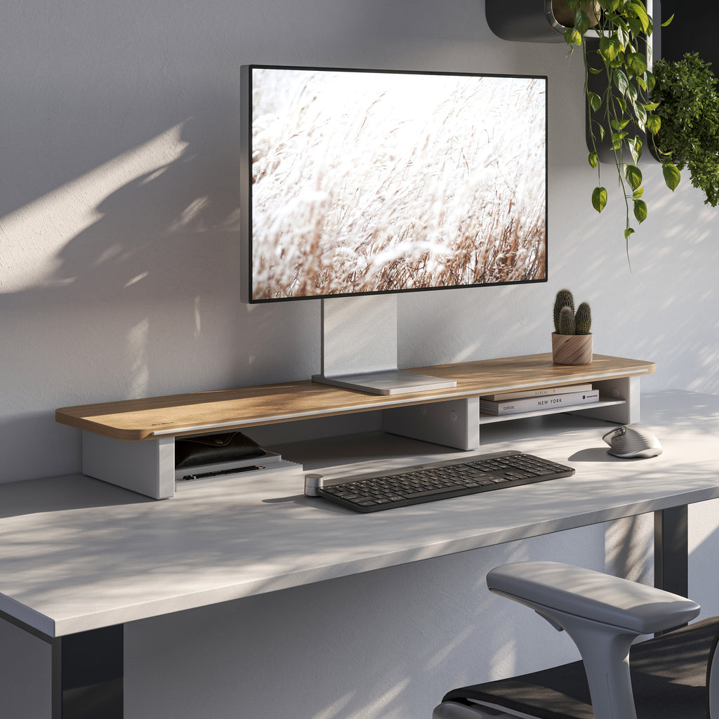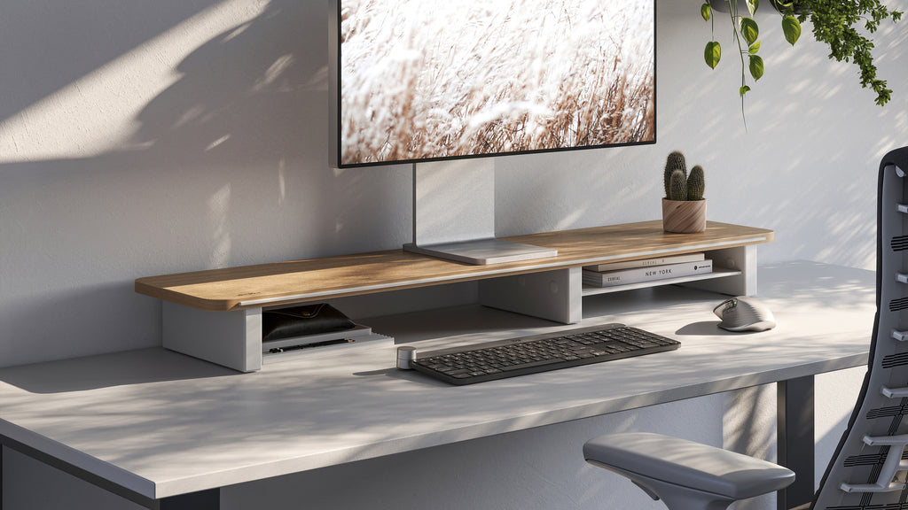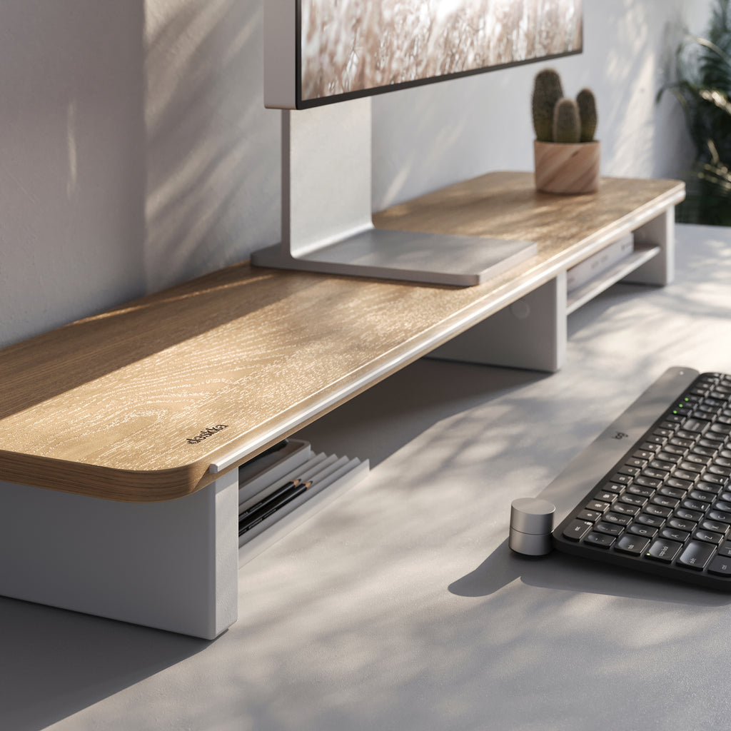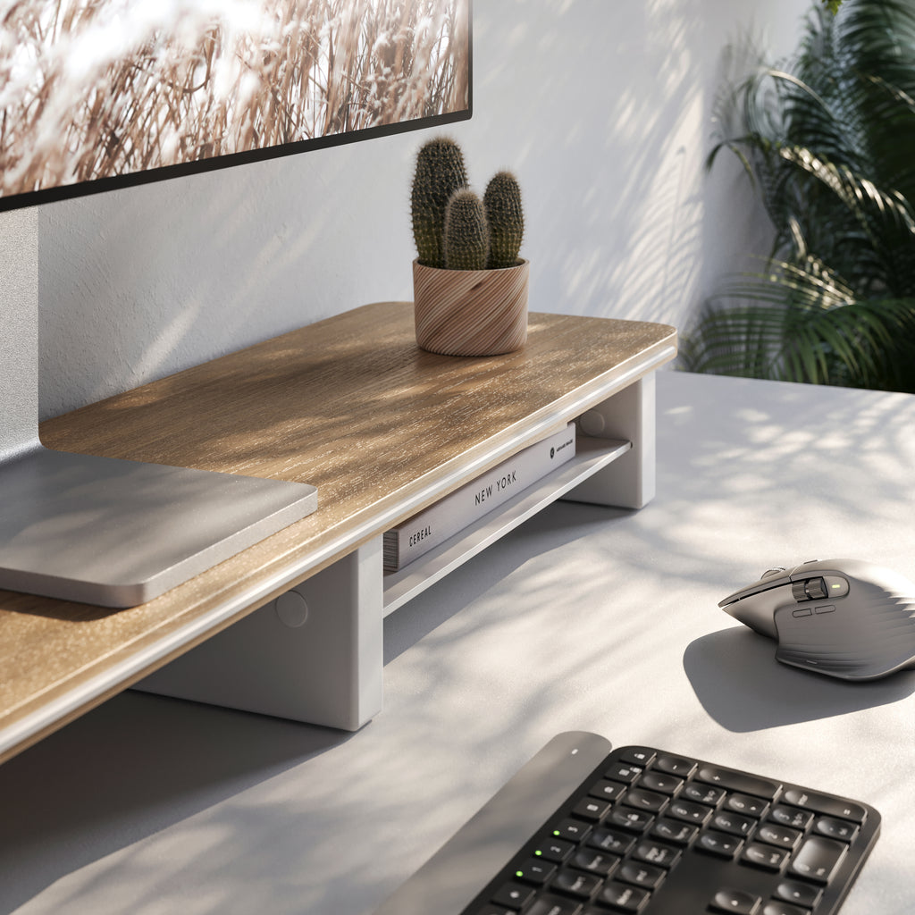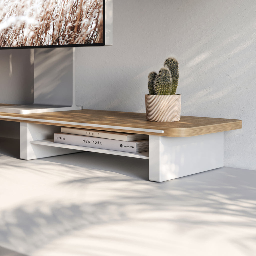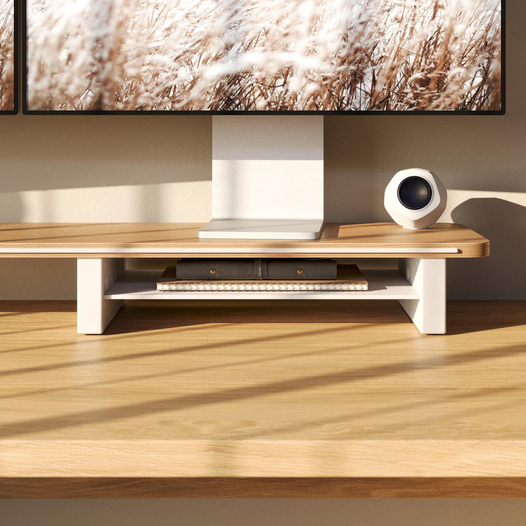 Oak Monitor Shelf in Trim Colour White